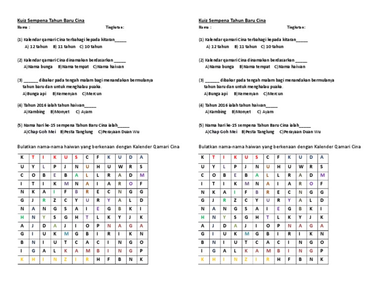 Contoh aktiviti sempena tahun baru cina. Aktiviti sembahyang pada 19 Februari 2021 dibenarkan di halaman rumah masing-masing pada waktu malam mengikut tradisi perayaan Tahun Baru Cina bagi Hokkien Cian. Mewarna sempena awal muharram. Download muat turun worksheet lembaran kerja aktiviti mewarna sempena sambutan maal hijrah awal muharram 1442h layanlah berita terkini tips berguna maklumat.
