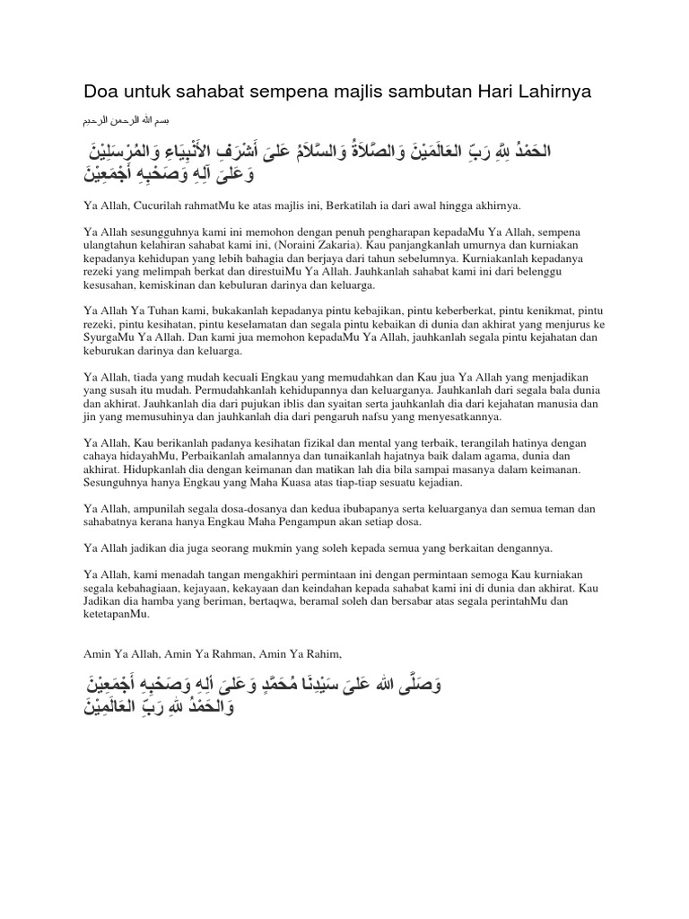 Doa Untuk Sahabat Sempena Majlis Sambutan Hari Lahirnya Pdf
