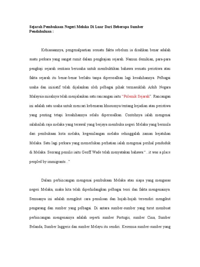 Pelajar dikehendaki membaca nota berkenaan bahan atau sumber konvensional. Pangkat Tunku Mahkota diambil alih oleh adindanya Tunku Abdul Rahman. Kesultanan ini memerintah Melaka selama 110 tahun sehingga ditewaskan org2 portugis pd 1511.