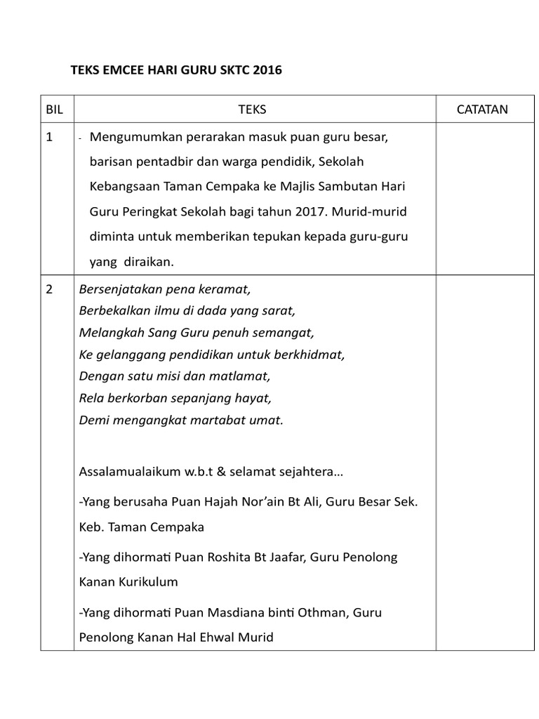 Teks Emcee Hari Guru Sktc 2015 Pdf