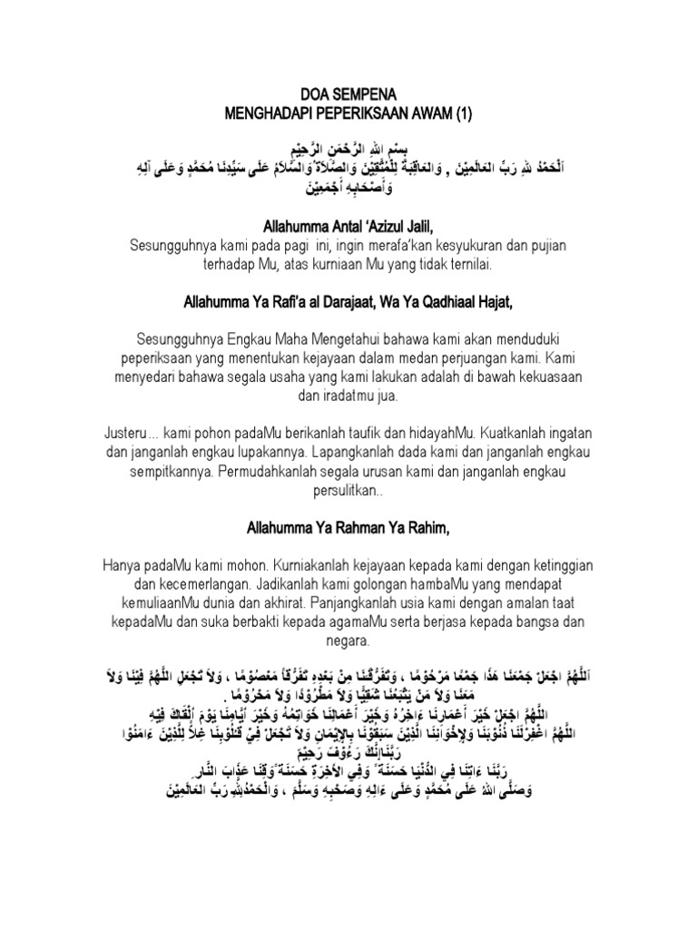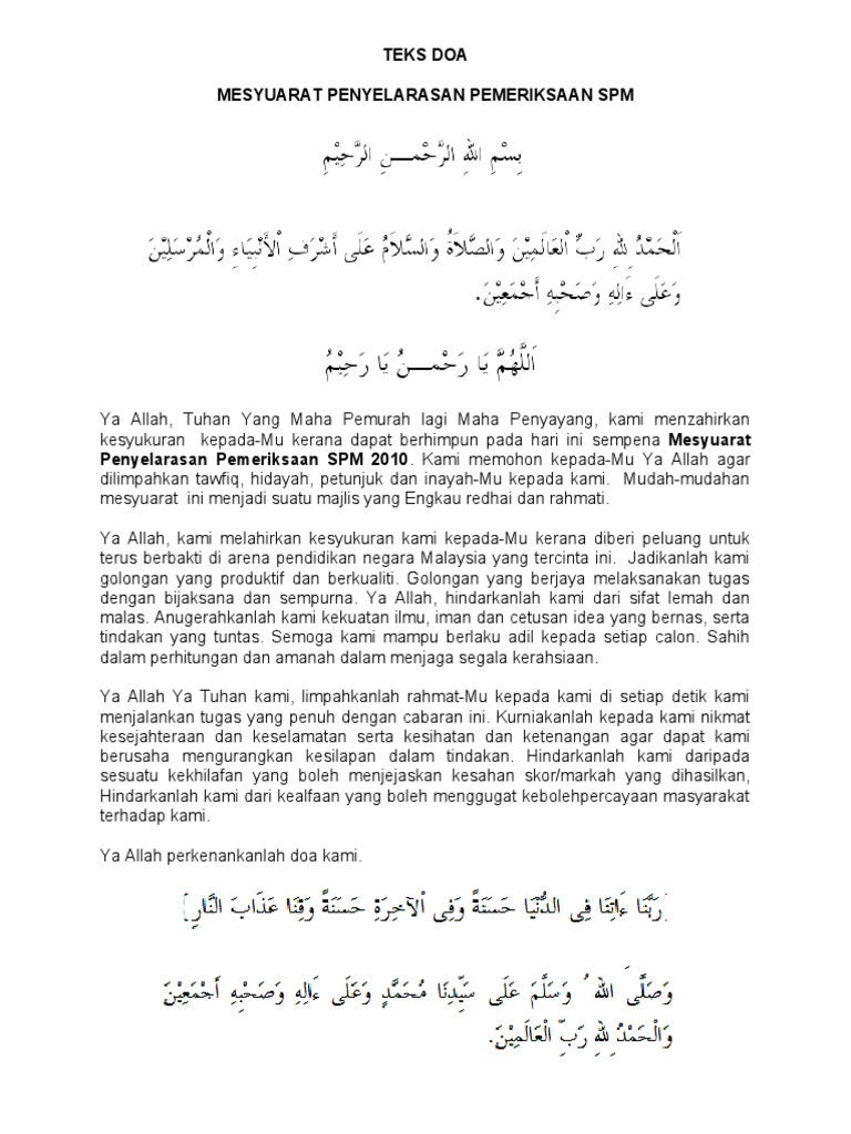 Teks Doa Mesyuarat Penyelarasan Spm Pdf