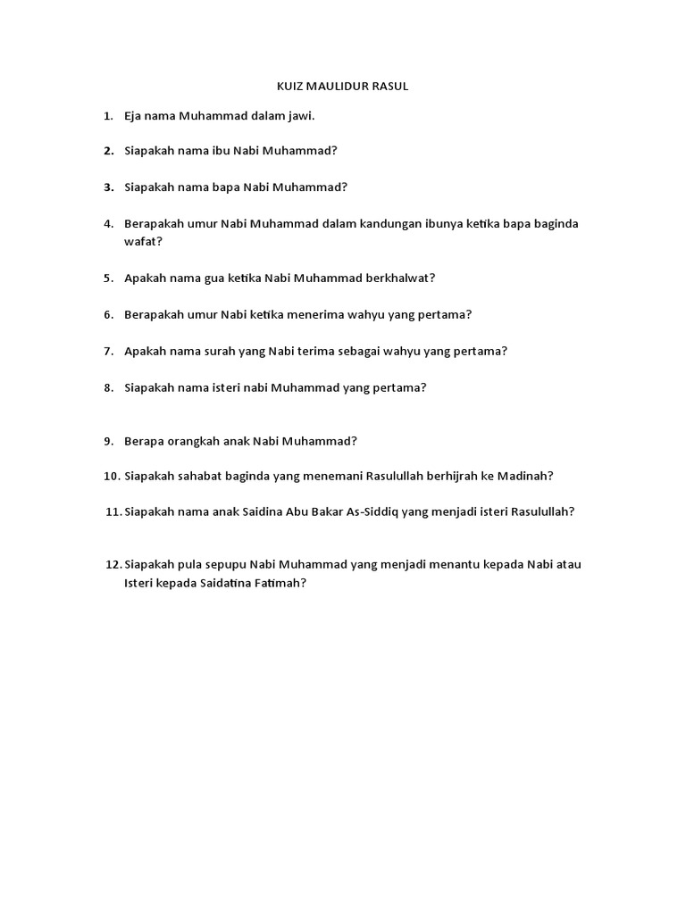 SEMPENA MAULIDUR RASUL 12 RABIUL AWAL 1443H Kuiz. Soalan yang senang untuk kategori kanak-kanakremaja 1. Randomposts nama anda email anda.