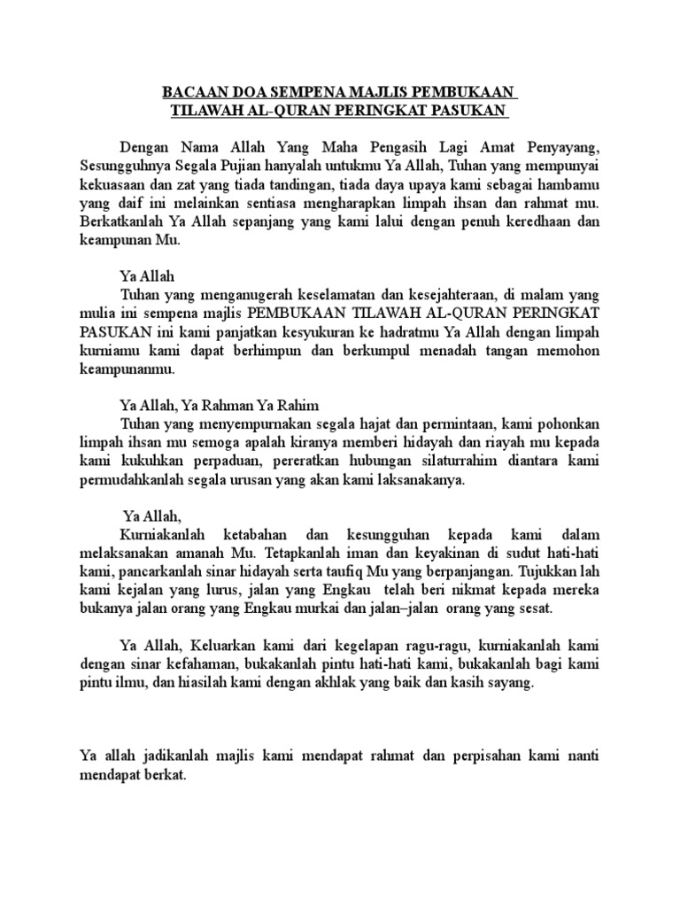 Doc Doa Sempena Majlis Penutup Kursus Dzul Hilmi Mohd Jani Academia Edu. 1 Bacaan Doa Majlis Dalam Bahasa Melayu. Berikut ini adalah doanya.