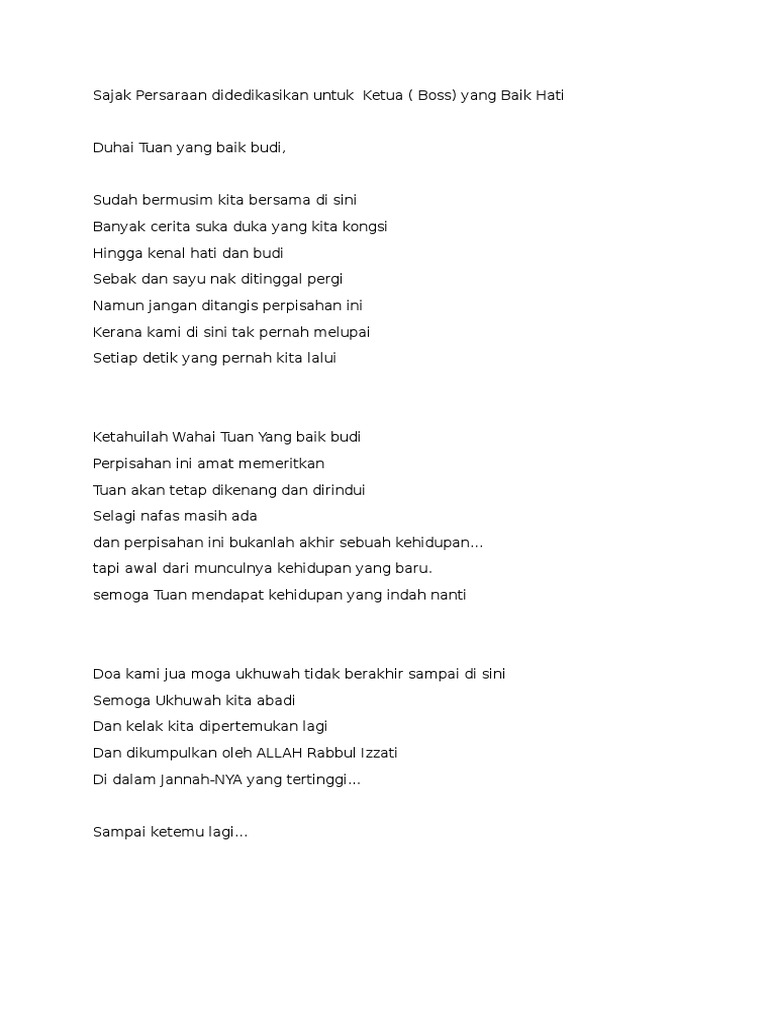 Sajak Persaraan Di Dedikasikan Untuk Ketua Pdf